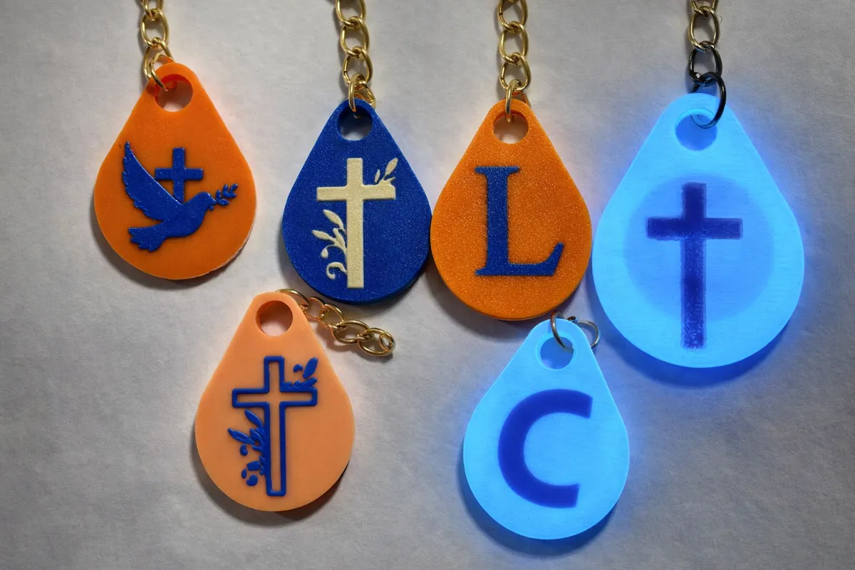 Une croix en creux, dessinée par son contour, ornée de détails floraux délicats — sur un fond saumon rosé chaleureux. Le modèle LogosNFC le plus doux de la gamme.