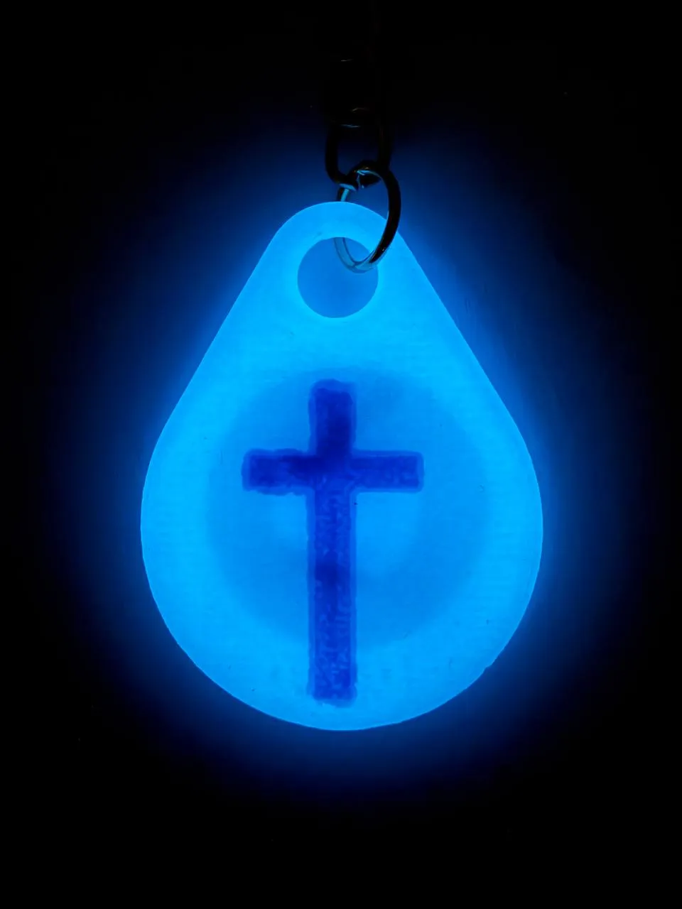 Porter un objet qui brille dans le noir, c'est porter ce symbole jusqu'à dans ses retranchements les plus concrets : la lumière de la foi ne s'éteint pas quand l'obscurité arrive. Elle brille précisément là.